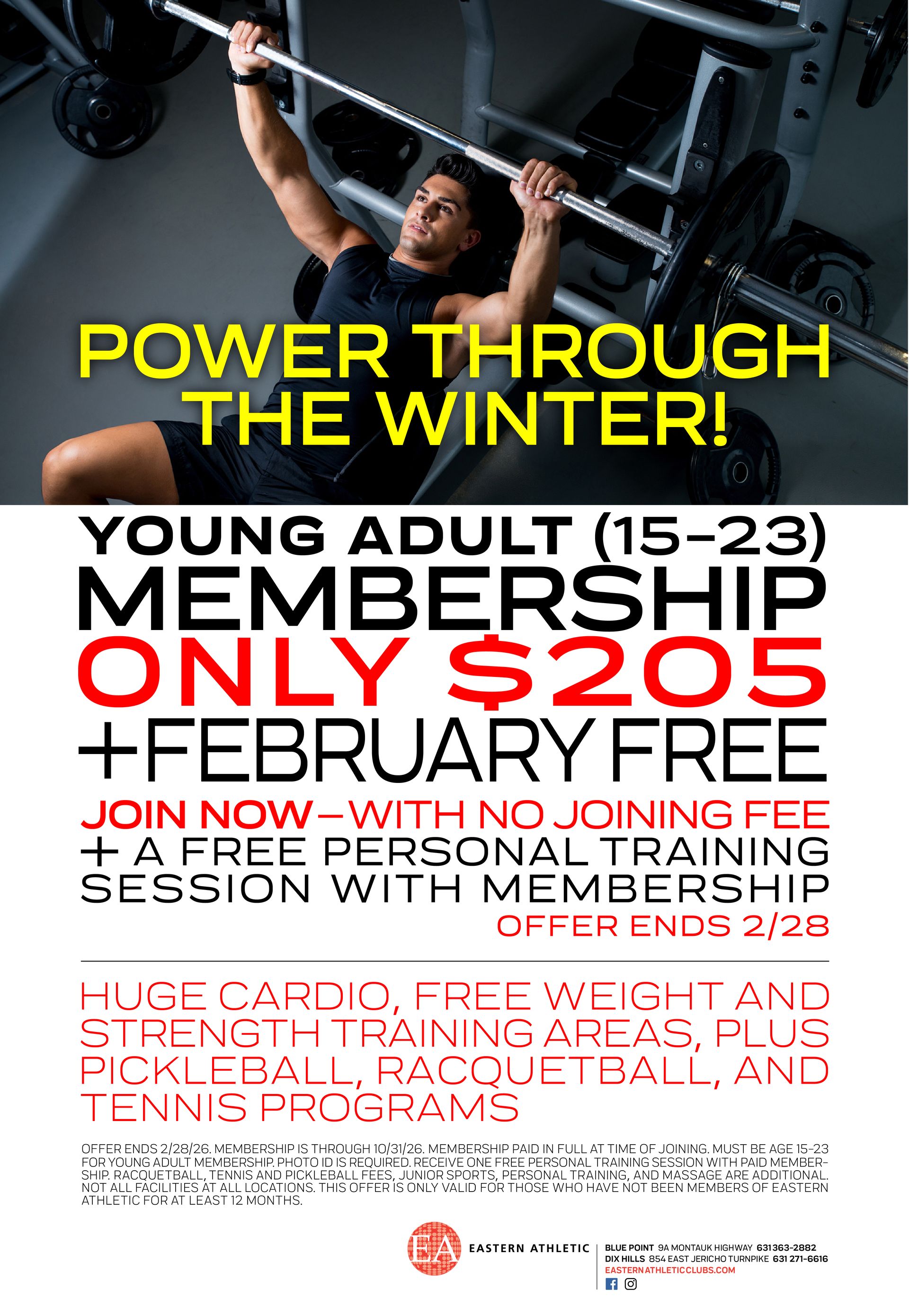 Eastern Athletic Clubs is a health club with a gym facility, tennis and racquetball courts located within. Visit our locations in Blue Point or Dix Hills to join today!